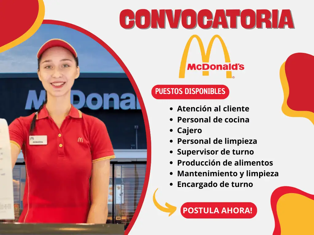 🍔 McDonald’s abre convocatoria 2025 🚀 con empleos en cocina, atención al cliente 💁♀️, limpieza 🧹 y reparto 🛵. ¡Sueldo competitivo 💰 y crecimiento 📈!